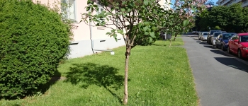Budsjettet for 2014 inneholder et beløp på 40.000 for planting av små syrin- og prydepletrær langs Trudvangveien og Harald Hårfagres gate som et miljøtiltak og for å beskytte plenen fra joggere osv.