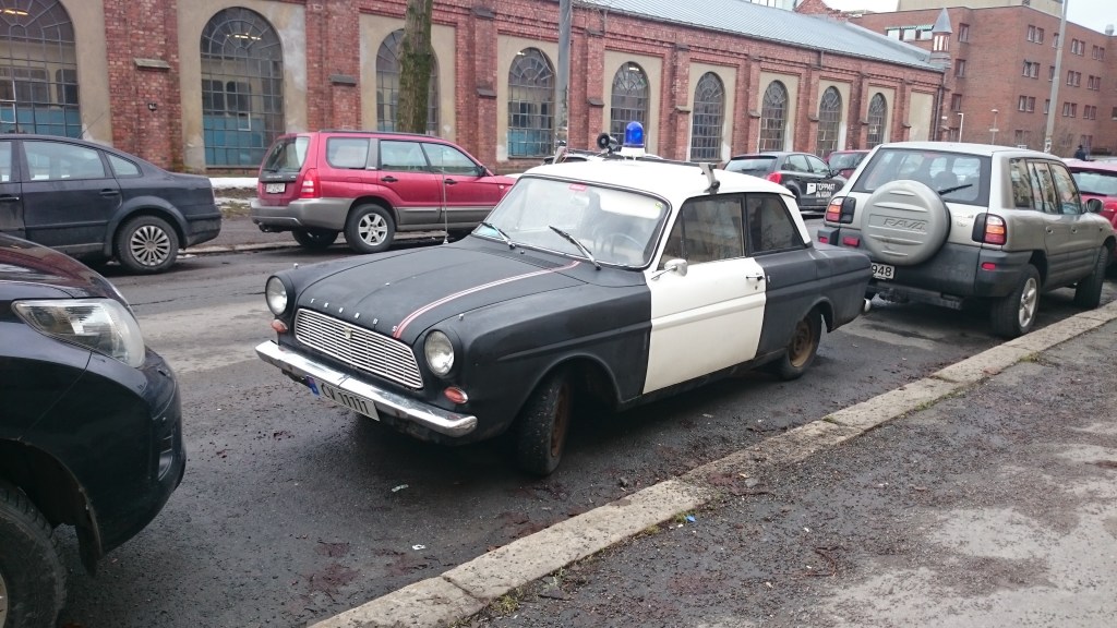 Sporveismuseet over veien har mye fint å se for lokaltrafikkhistorisk interesserte. Rett ved siden av har noen også funnet frem en Ford Taunus politibil fra tidlig 1960-tall. Artig 🙂