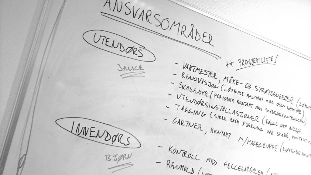 Vi avholdt første styremøte etter sommeren tirsdag 11. august og etter en god felles gjennomgang av alle kjente drifts- og prosjektoppgaver refordelte vi hovedansvar for perioden frem til mai 2016 som følger: