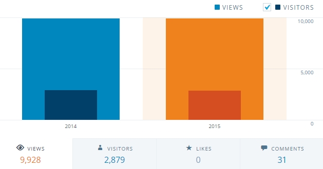 For en statistikknerd er bloggmotoren WordPress sin brukerstatistikk artig lesing. Solvangpark.com brukte 11 måneder på å nå 10.000 sidevisninger i 2014, mot bare 8 måneder i 2015 – til tross for halvparten så mange publiserte artikler.