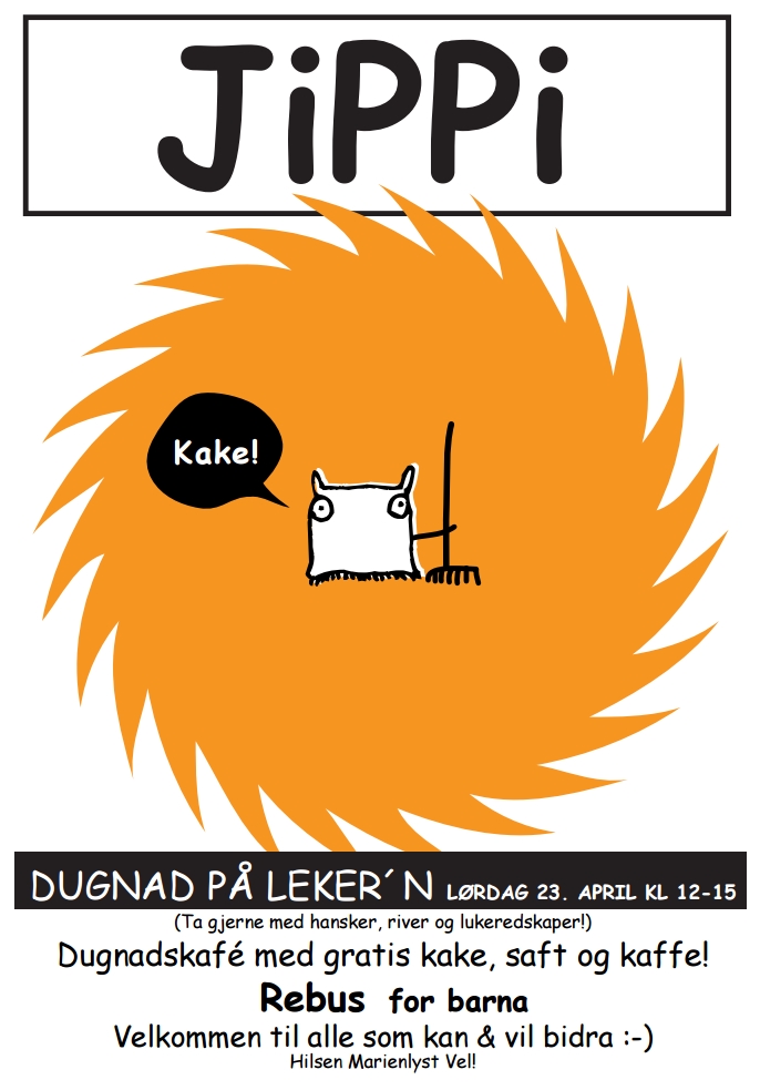 Ta med rive og lukeredskaper om du har. Om noen kan tenke seg å male litt, så ha på maletøy. Det er også bare å ta med kake/ boller til dugnadskafé.