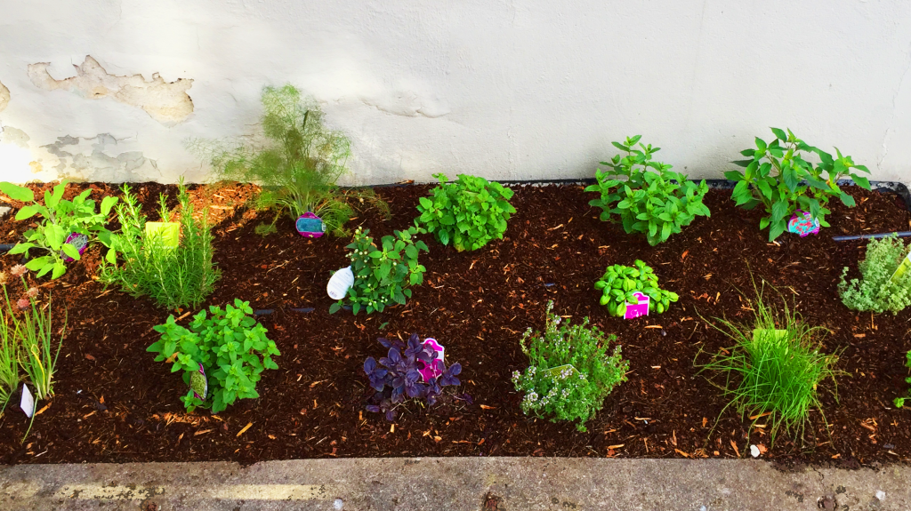 Det er fritt frem for å forsyne seg av urtene. Ta gjerne en liten runde med luking i samme slengen hvis du ser at det trengs. Her er en oversikt over urtene du kan finne i det nye bedet: