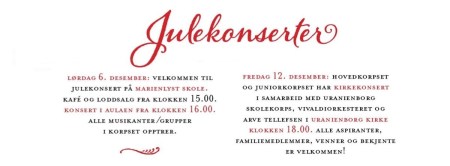 Trenger du mer julestemning? Vårt lokale skolekorps MSMK holder julekonsert i den fine aulaen på Marienlyst skole lørdag 6. desember kl. 16:00.