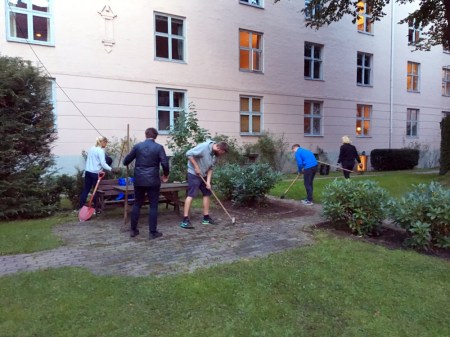 Det var utømmelige mengder med stå-på vilje og tæl å se i bakgården i går! For en gjeng! 🙂 Rundt halvparten av seksjonene var representert, og flere stilte med to voksne pluss hjelpsomme barn. Det er i hvert fall det beste oppmøtet vi har opplevd.